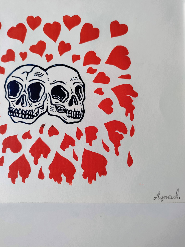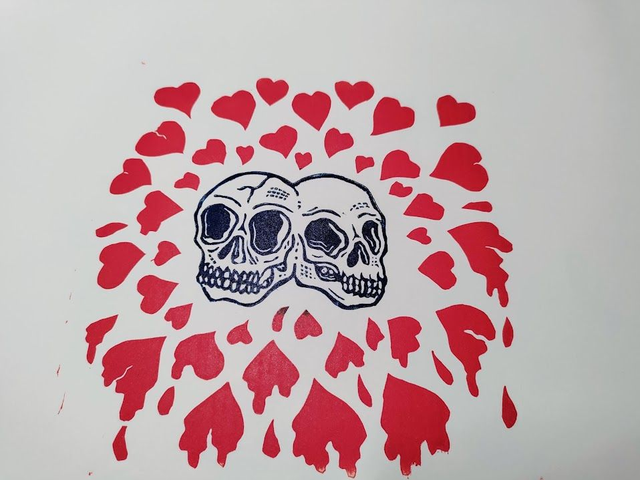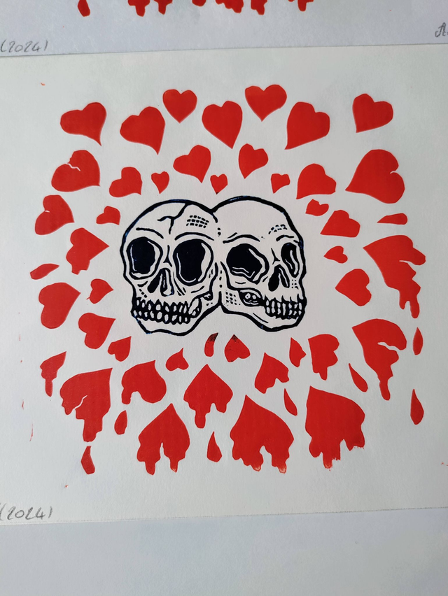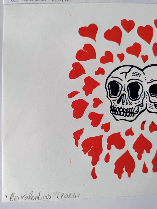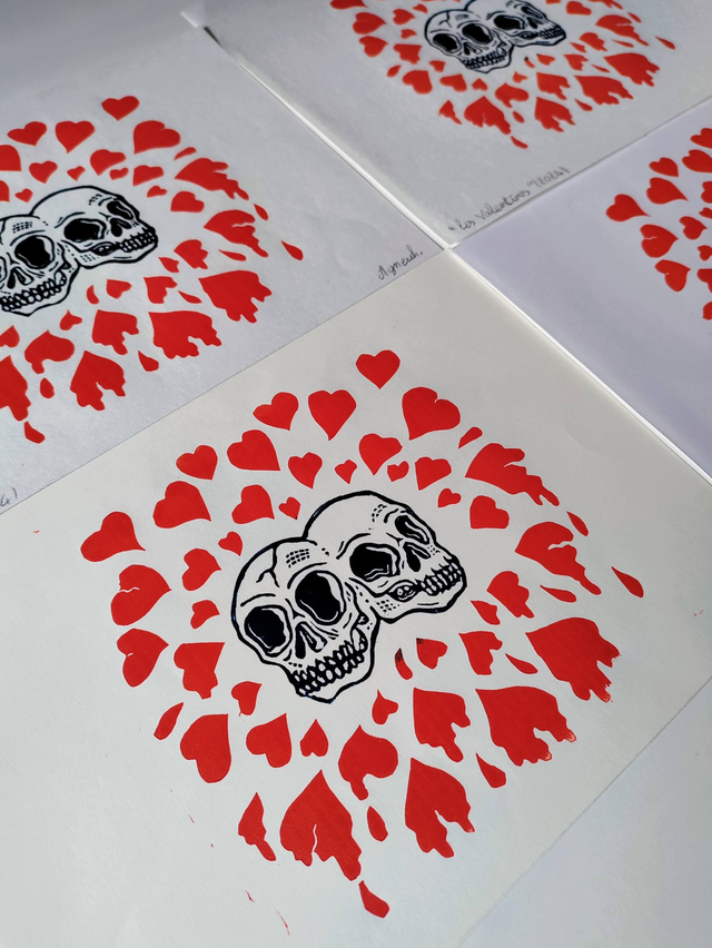 #linogravure #cranes #squelettes #coeurs #impression #print #art #affiches #cadre #deco #skull
