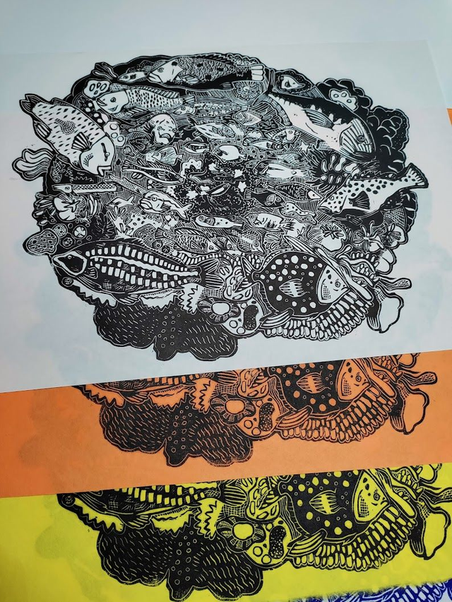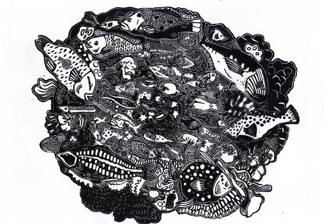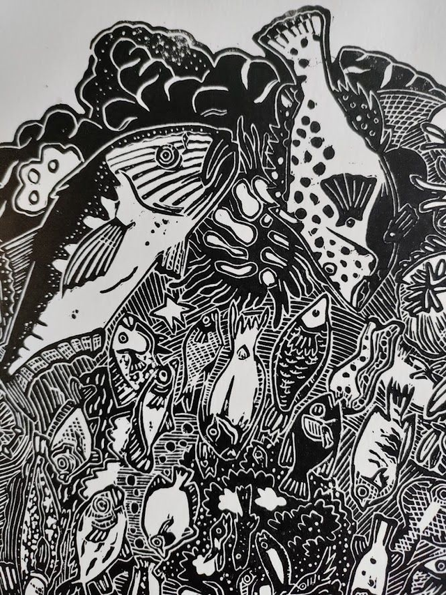 Linogravure poissons
