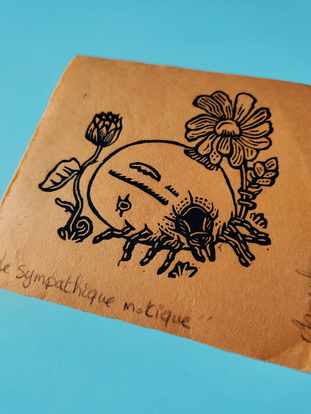 Sympathique M.Tique, linogravure petit format carré